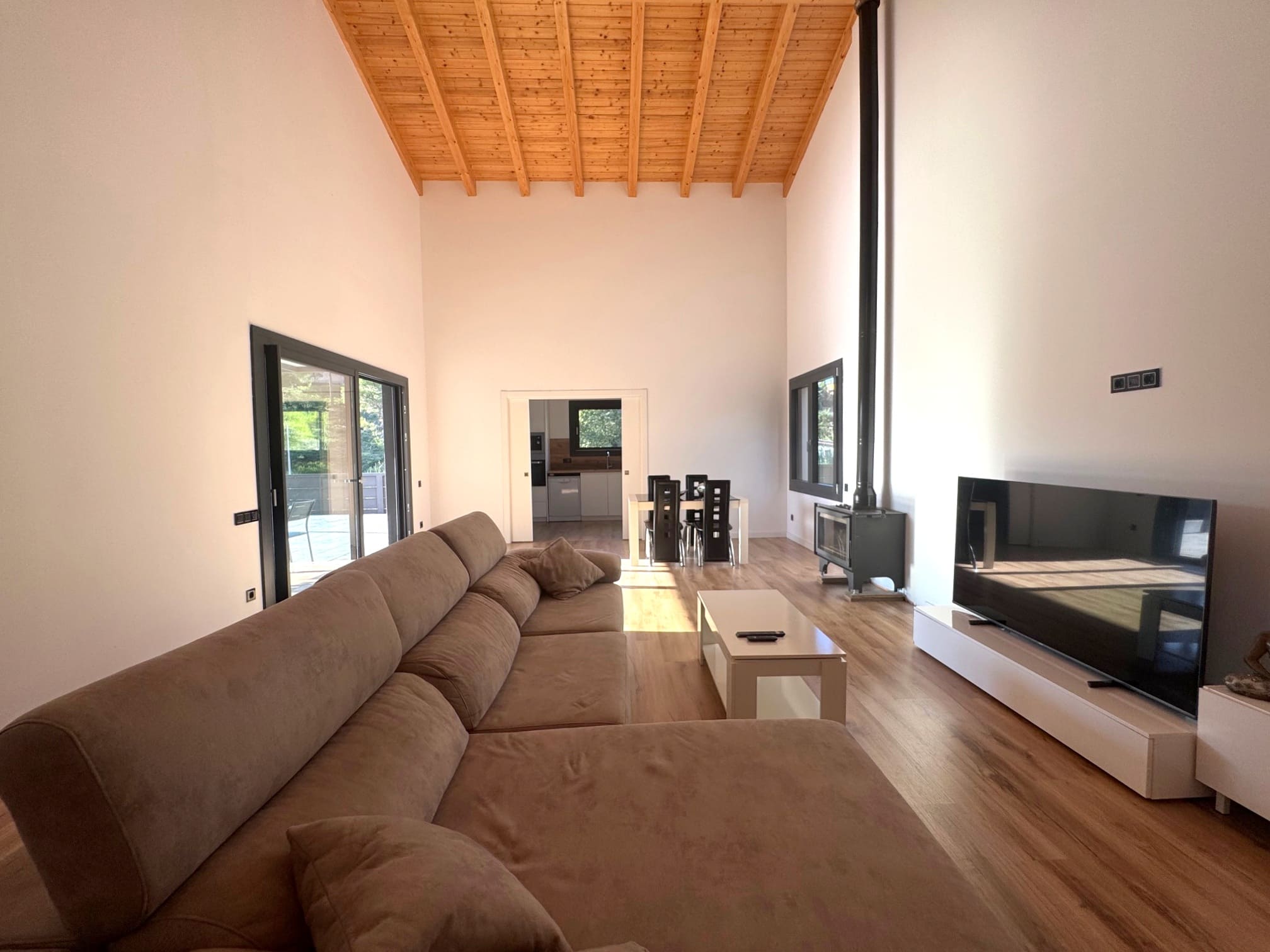 - Gran salón-comedor de 50 m² con chimenea de leña (fuego a tierra) y amplios ventanales con vistas y salida directa al jardín y zona de piscina.