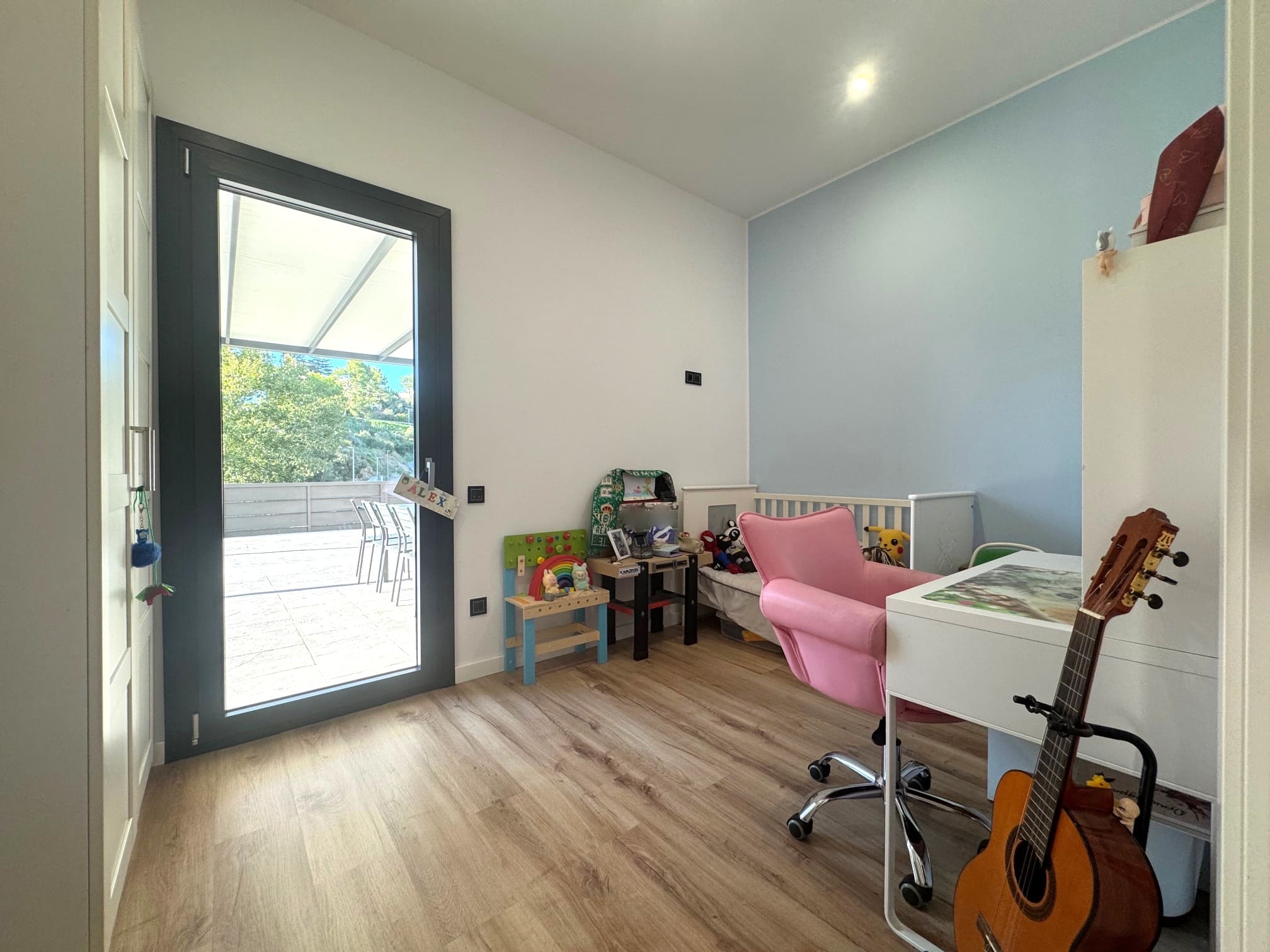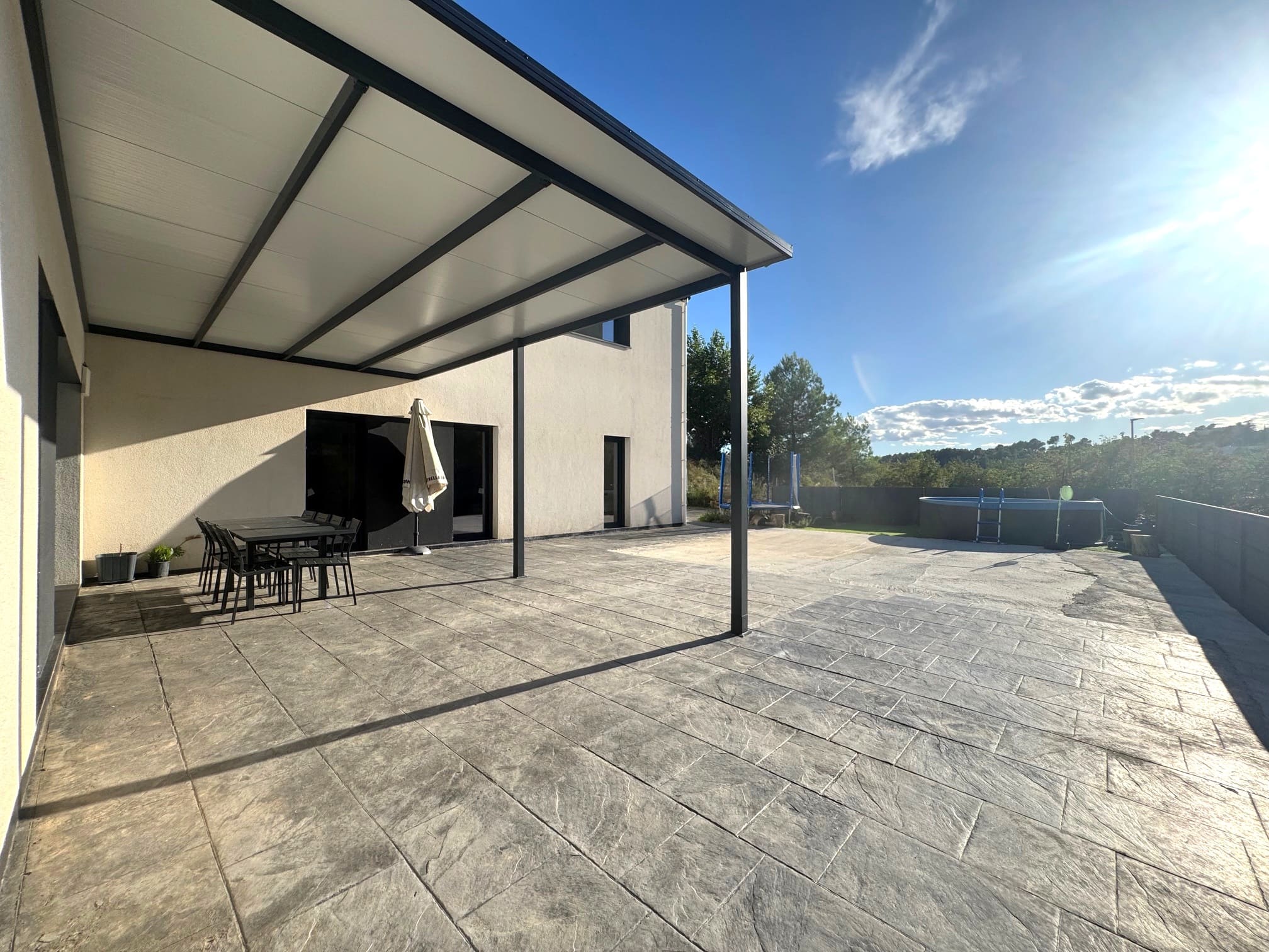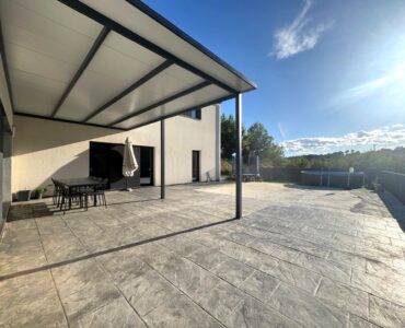 La vivienda, de estilo moderno y minimalista, fue construida en 2022 sobre una parcela de 603 m², y ofrece una superficie construida de 215 m² (132 m² útiles). Todo ha sido diseñado para ofrecer confort, amplitud y luz natural en cada rincón.